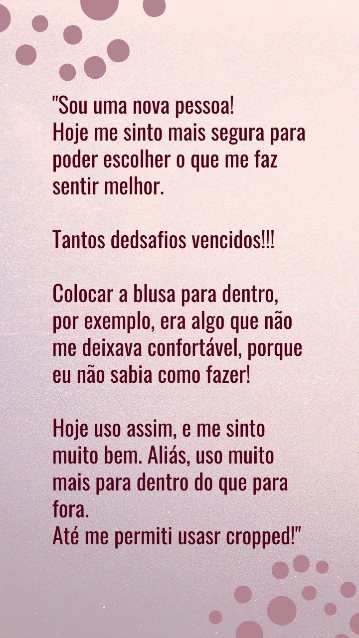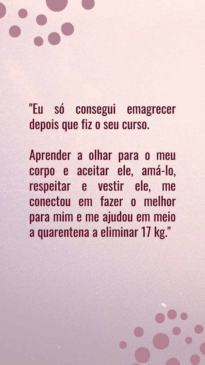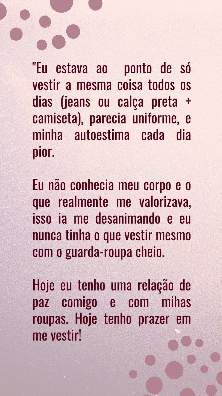 Então, se você não quer apenas valorizar seu corpo de hoje com a roupa, mas também quer ter uma relação de paz com seu corpo e assim ser quem você realmente é, vem comigo!